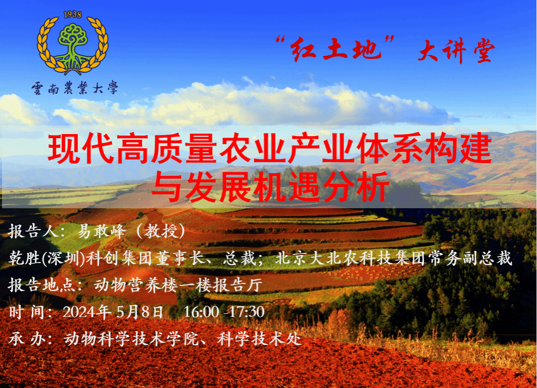 5月8日“红土地”大讲堂:现代高质量农业产业体系构建与发展机遇分析