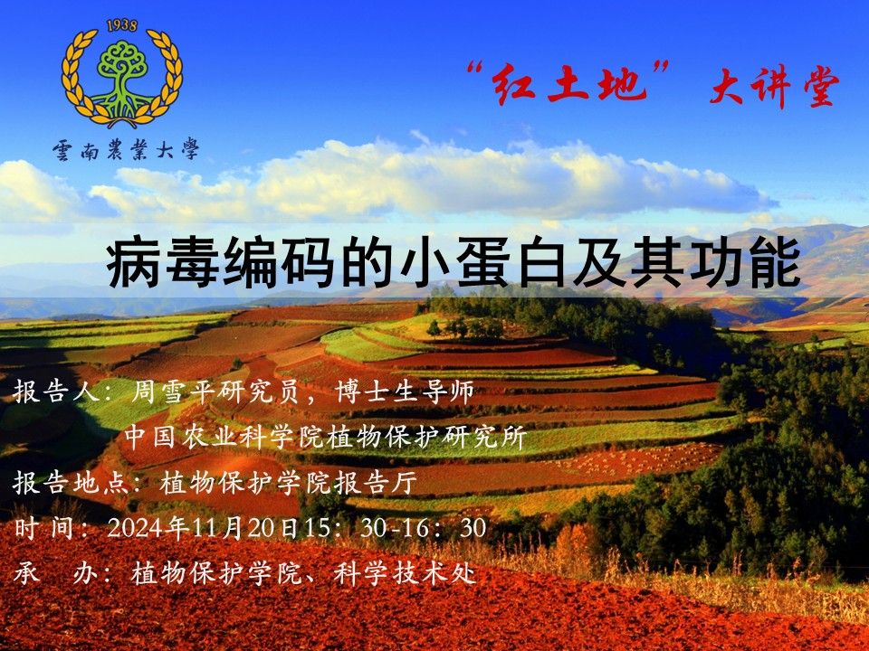 11月20日“红土地”大讲堂:病毒编码的小蛋白及其功能
