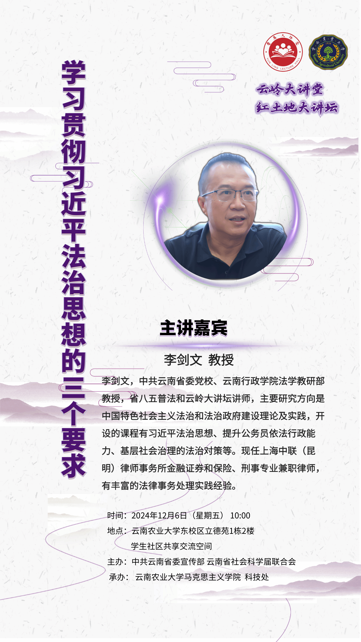 12月6日云岭大讲堂·红土地大讲坛:学习贯彻习近平法治思想的三个要求