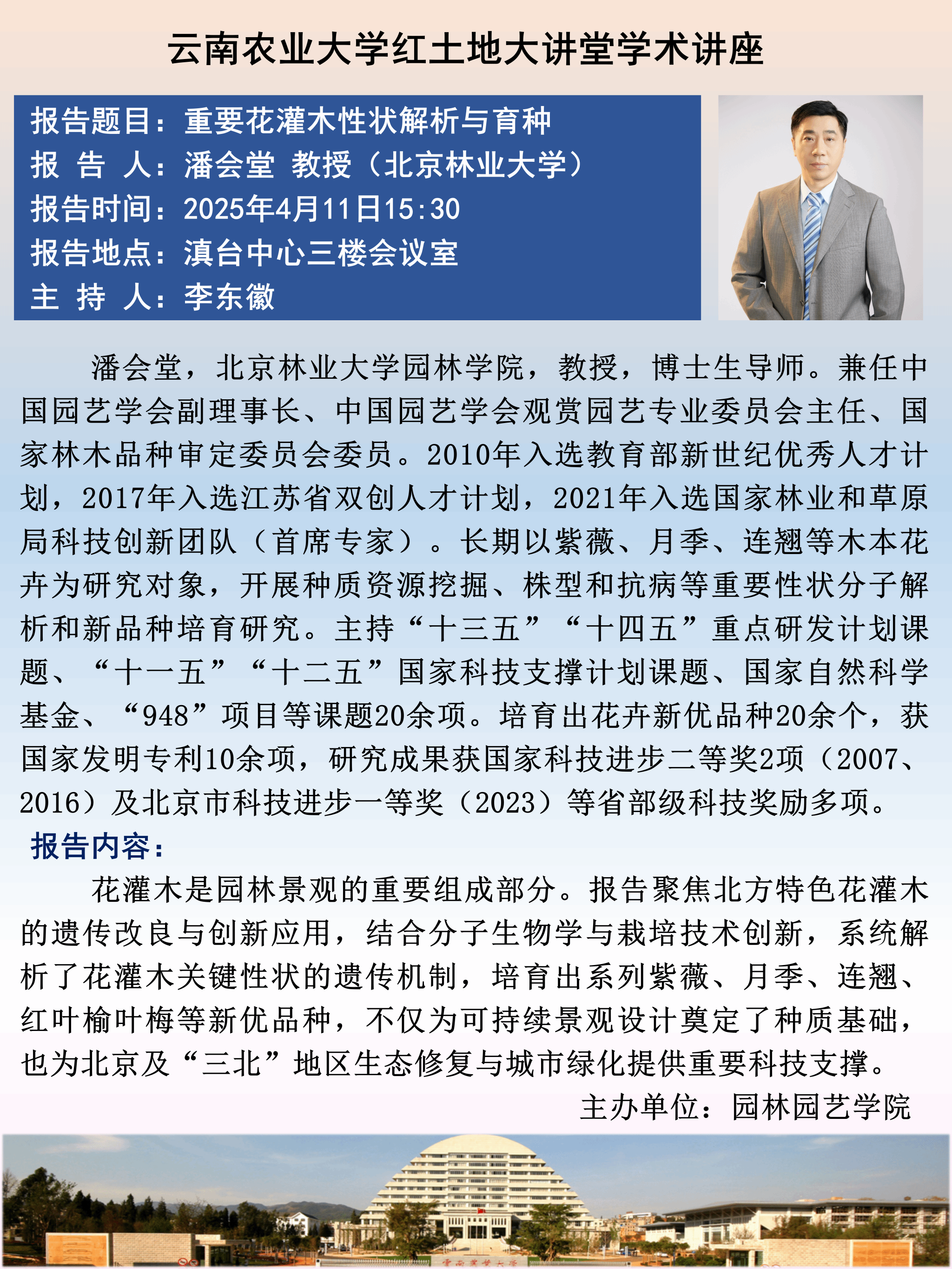 4月11日“红土地”大讲堂:重要花灌木性状解析与育种