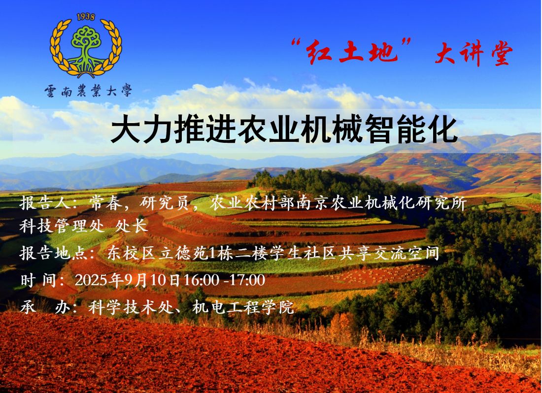 9月10日“红土地”大讲堂:大力推进农业机械智能化