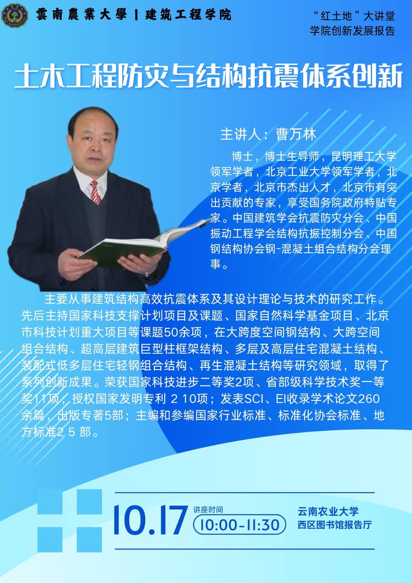 10月17日“红土地”大讲堂:土木工程防灾与结构抗震体系创新
