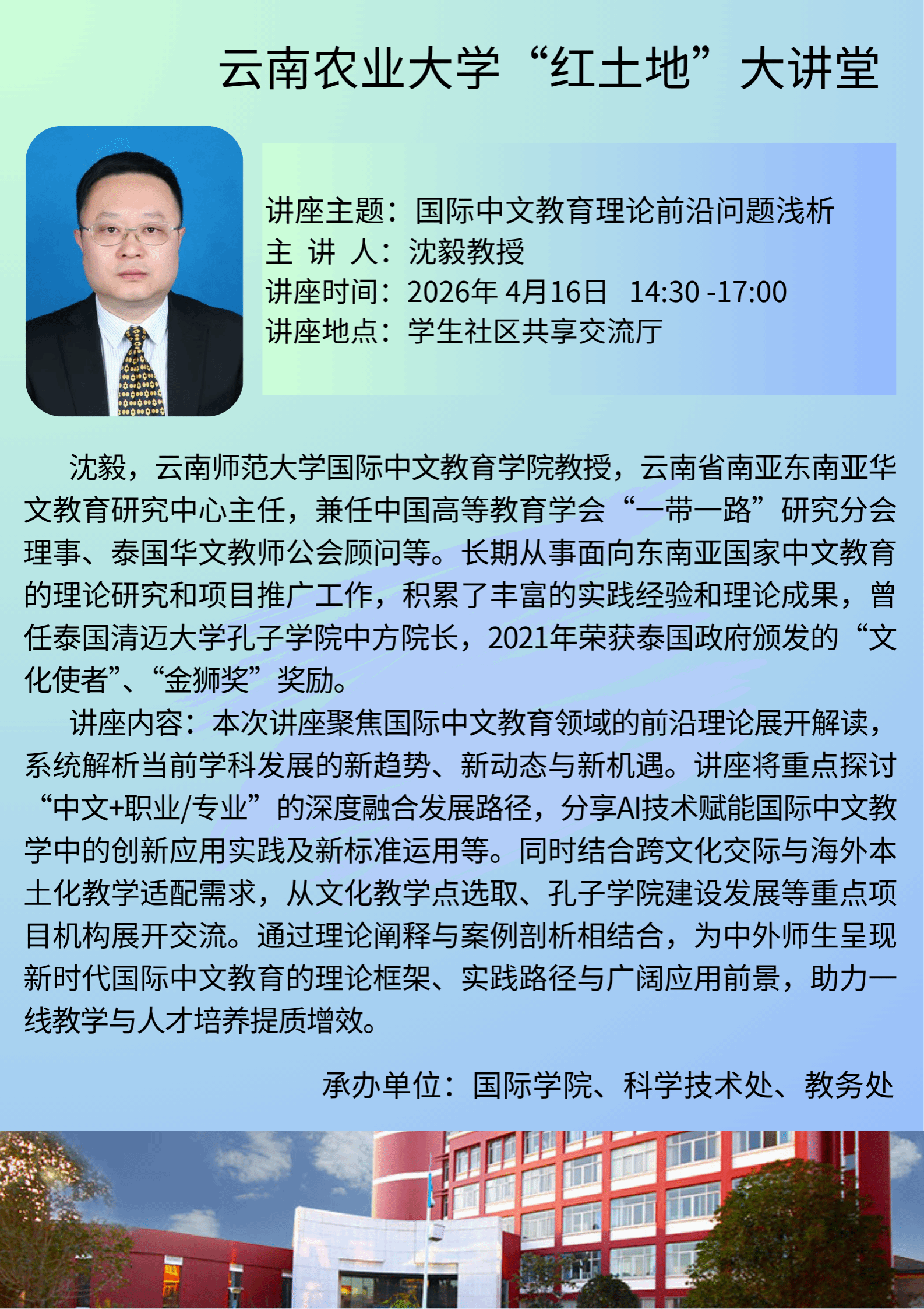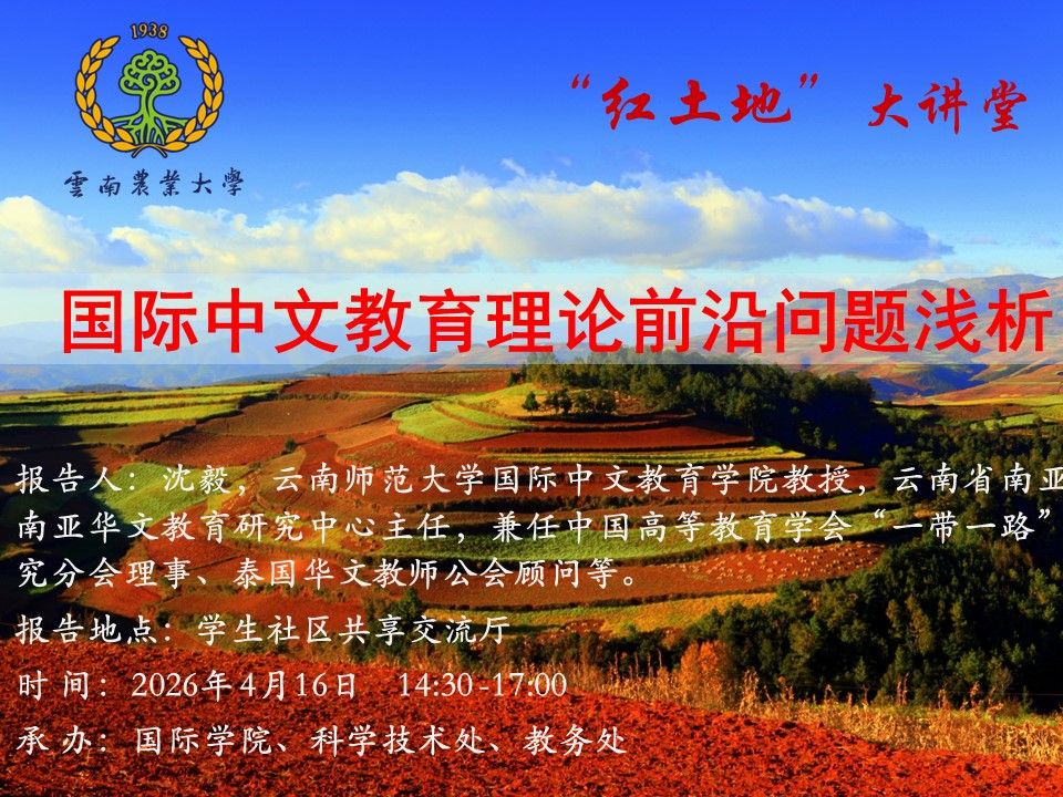 4月16日“红土地”大讲堂:国际中文教育理论前沿问题浅析
